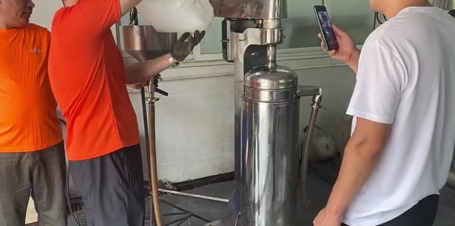為迎合市場(chǎng)需求,越來越多的食品生產(chǎn)領(lǐng)域會(huì)對(duì)食品的澄清度有一定的要求,拿浙江這家食品廠生產(chǎn)的雞湯舉例來說,該廠對(duì)于物料的分離需求主要就是將雞湯中的渣質(zhì)過濾掉,以便后續(xù)的加工應(yīng)用,根據(jù)物料實(shí)際情況我們發(fā)現(xiàn),雞湯中所含渣質(zhì)顆粒較為細(xì)小,因此我么選擇了管式離心機(jī)做澄清分離實(shí)驗(yàn)檢驗(yàn)雞湯的分離效果。