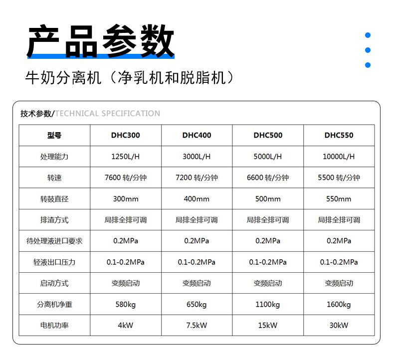 處理過的物料:牛奶脫脂、牛奶凈乳、乳清分離、酪乳分離、乳品乳清澄清、乳制品脫菌、奶油分離、還原奶、發(fā)酵酸奶等。
